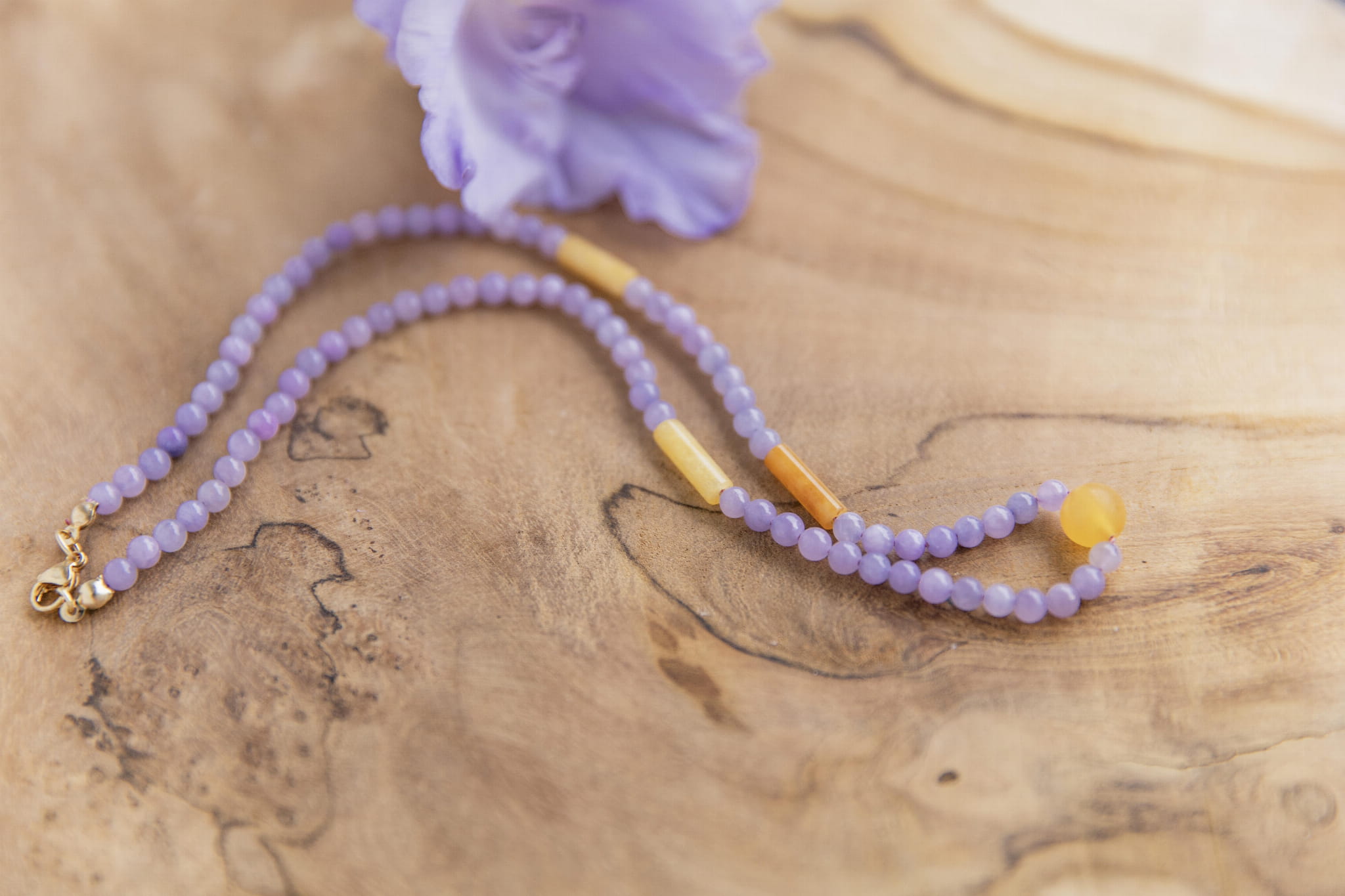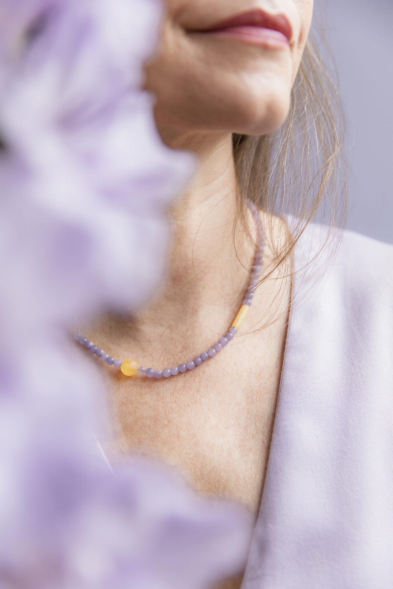 Liliowy agat – kamień harmonii i duchowego spokoju – otula jak miękki welon, przynosząc ukojenie i równowagę.