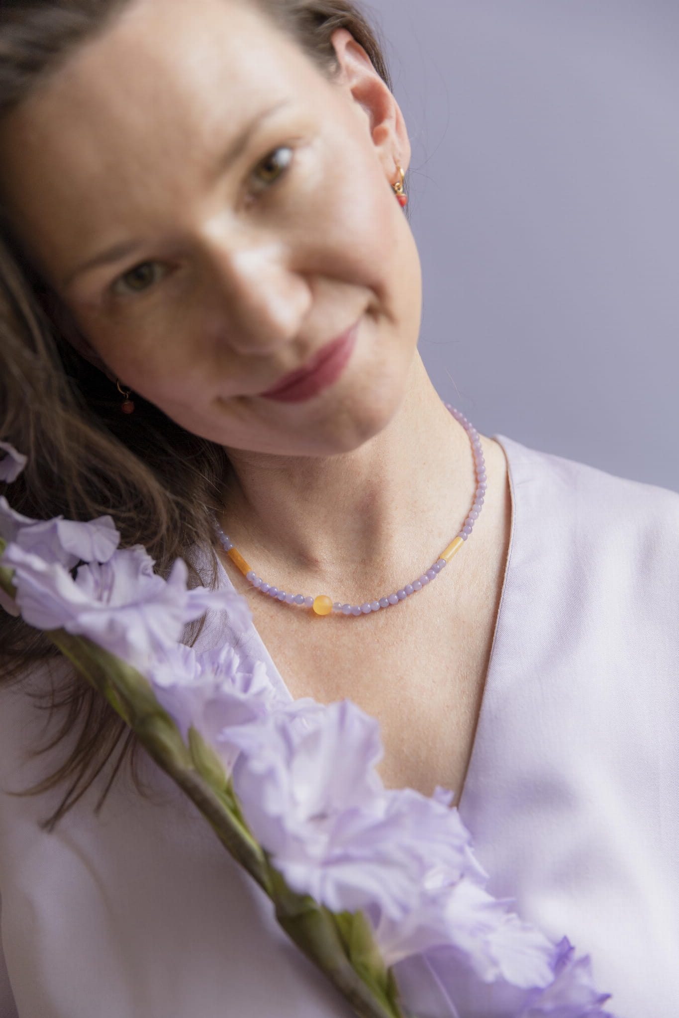 Ten naszyjnik to opowieść o miękkości, delikatności i wewnętrznym uzdrowieniu.